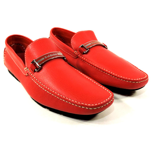 BALDININI 🇮🇹 MEN'S RED SOFT LEATHER COMFORT FLAT SUMMER LOAFERS