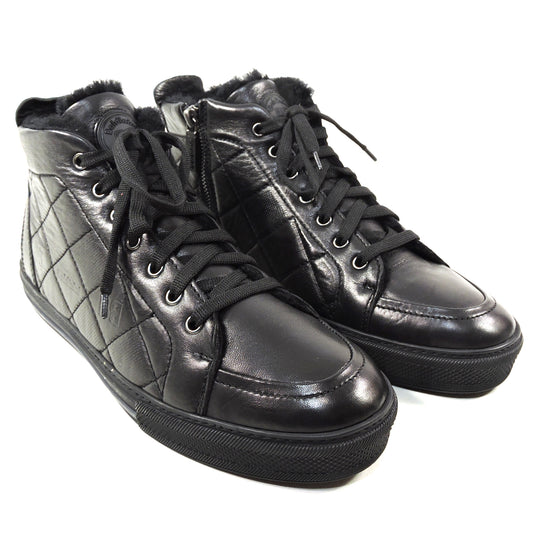 CASADEI 🇮🇹 MEN'S BLACK SOFT LEATHER LAMB FUR FASHION WINTER SNEAKERS