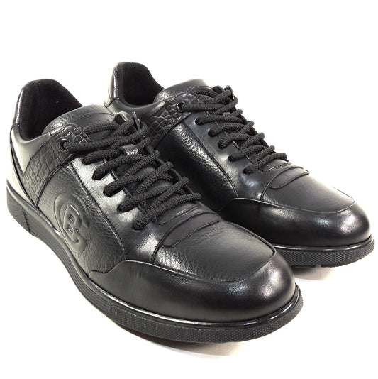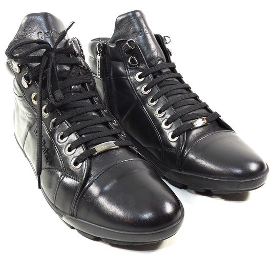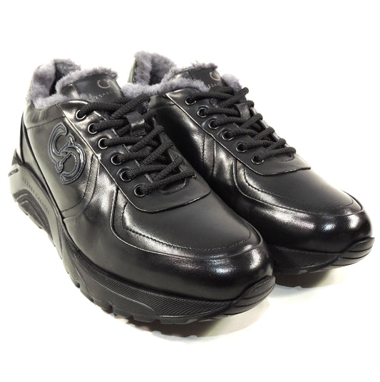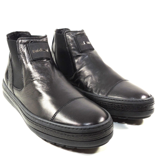 BALDININI 🇮🇹 MEN'S BLACK SOFT LEATHER COMFORT FUR INSOLE WINTER SNEAKERS