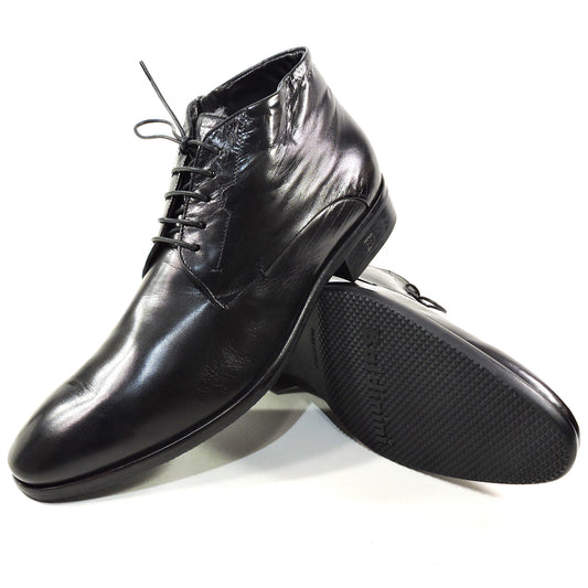 BALDININI 🇮🇹 MEN'S BLACK SOFT LEATHER COMFORT FUR LINING WINTER CHUKKA BOOTIE