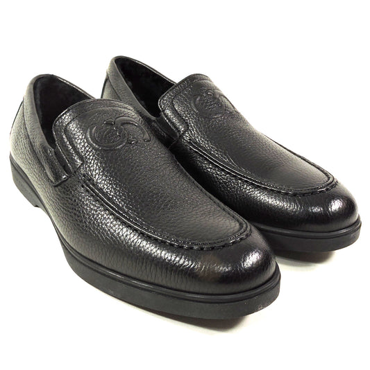 CASADEI 🇮🇹 MEN'S BLACK SOFT LEATHER MONTONE FUR WINTER LOAFERS