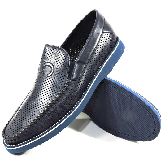 CASADEI 🇮🇹 MEN'S BLUE SOFT LEATHER COMFORT SUMMER LOAFERS