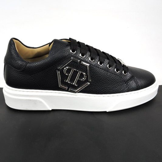 PHILIPP PLEIN 🇮🇹 MEN'S BLACK LEATHER COMFORT FASHION SNEAKERS