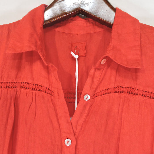 120%LINO 🇮🇹 WOMEN'S RED LINEN FASHION SUMMER DRESS