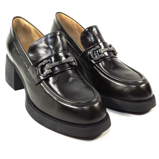 CHIARA COLINI 🇮🇹 WOMEN'S BLACK SOFT LEATHER COMFORT HEELED LOFERS