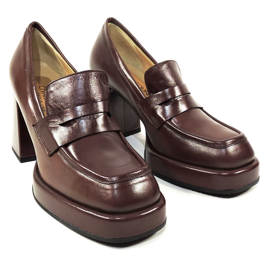 CHIARA COLINI 🇮🇹 WOMEN'S BROWN SOFT LEATHER COMFORT HEELED LOFERS