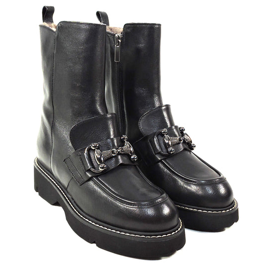 CHIARA COLINI 🇮🇹 WOMEN'S BLACK SOFT LEATHER WINTER COMFORT FUR BOOTIE