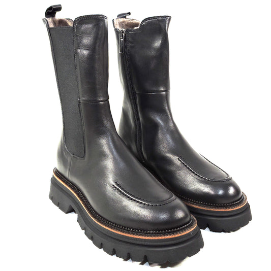 CHIARA COLINI 🇮🇹 WOMEN'S BLACK SOFT LEATHER WINTER FUR CHELSY BOOTIE BOUTIQUE