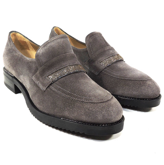 CHIARA COLINI 🇮🇹 WOMEN'S GREY SUEDE LEATHER COMFORT FASHION LOAFERS