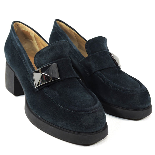 CHIARA COLINI 🇮🇹 WOMEN'S NAVY BLUE SUEDE COMFORT FASHION LOAFERS