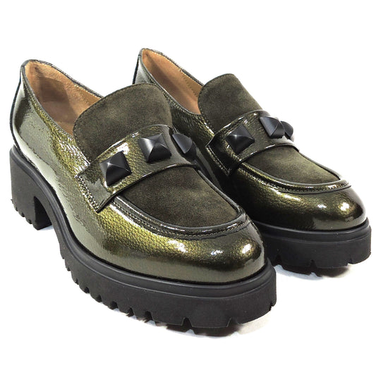 CHIARA COLINI 🇮🇹 WOMEN'S GREEN PATENT LEATHER COMFORT FASHION LOAFERS