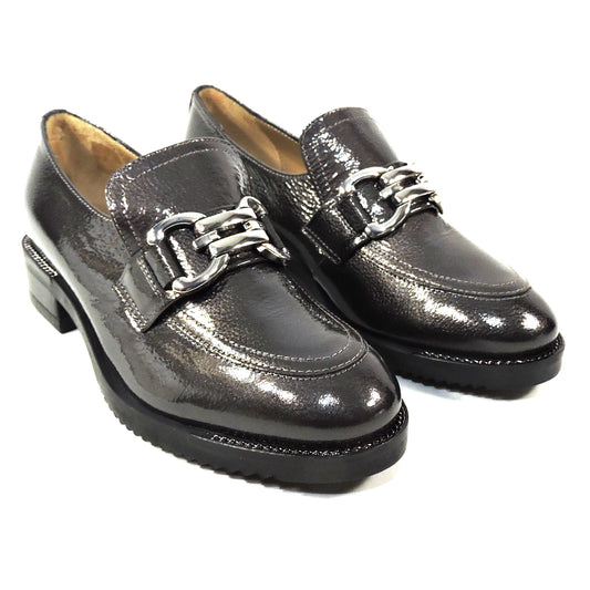 CHIARA COLINI 🇮🇹 WOMEN'S GREY SOFT PATENT LEATHER COMFORT FASHION LOFERS