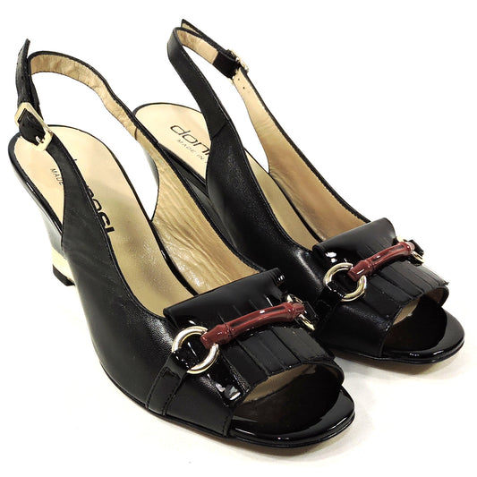 DONNA SI 🇮🇹 WOMEN'S BLACK PATENT LEATHER COMFORT WEDGE SANDALS