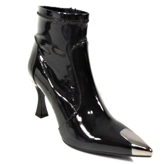 ALESSANDRO DI MARIA 🇮🇹 WOMEN BLACK PATENT LEATHER FASHION ANKLE BOOTIE