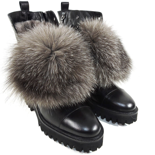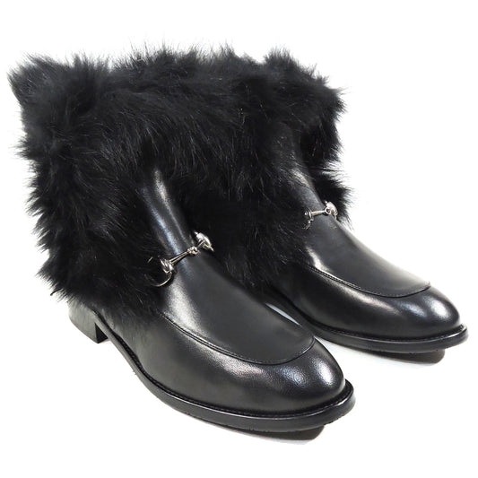 ALESSANDRO DI MARIA 🇮🇹 WOMEN'S BLACK LEATHER & FUR WINTER FASHION BOOTIE