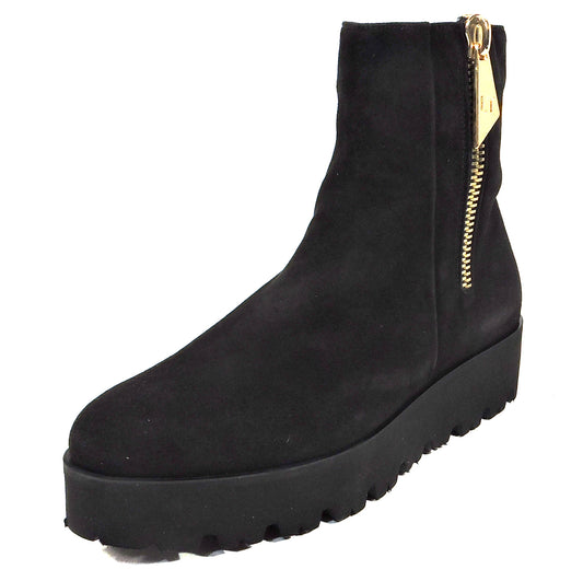 LUIGI TRAINI 🇮🇹 WOMEN'S BLACK SOFT SUEDE COMFORT FLAT BOOTIE