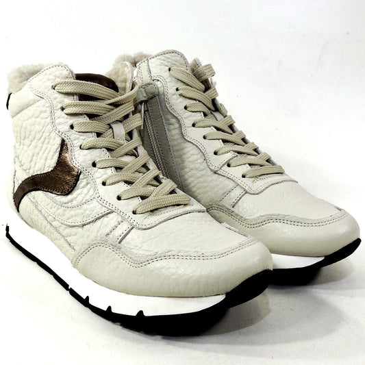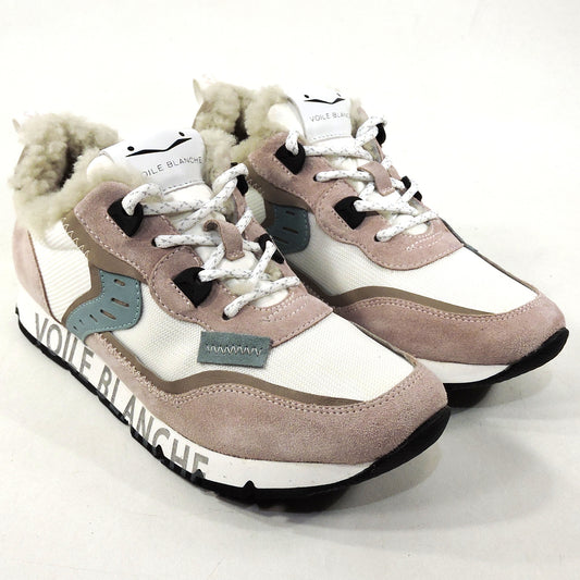 VOILE BLANCHE 🇮🇹 WOMEN'S BEIGE LEATHER & WOOL WINTER FASHION SNEAKERS