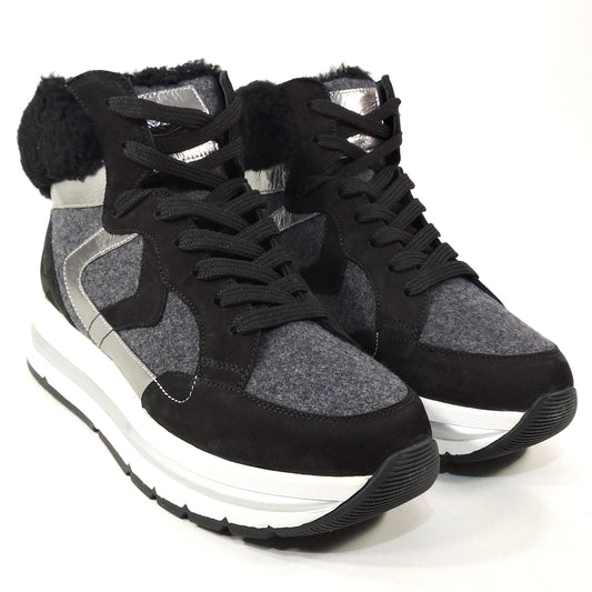 VOILE BLANCHE 🇮🇹 WOMEN'S BLACK LEATHER & WOOL WINTER FASHION SNEAKERS