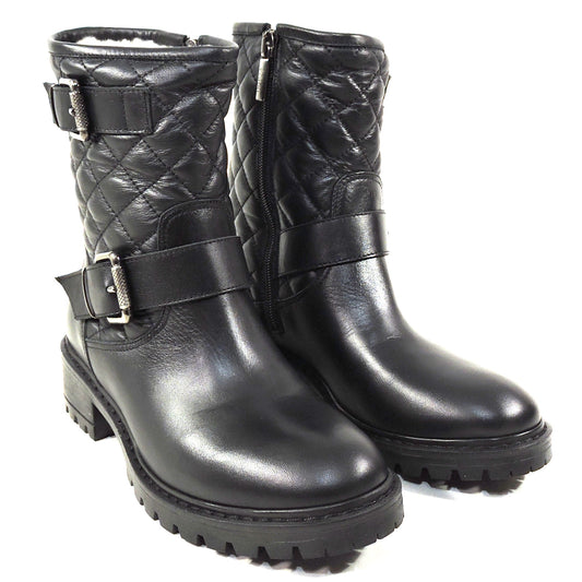 LUIGI TRAINI 🇮🇹 WOMEN'S BLACK SOFT LEATHER FUR WINTER BOOTIE