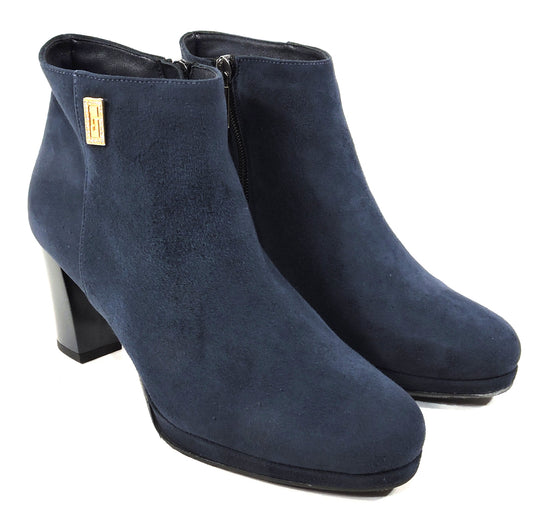 LUIGI TRAINI 🇮🇹 WOMEN'S NAVY BLUE SUEDE COMFORT ANKLE BOOTIE