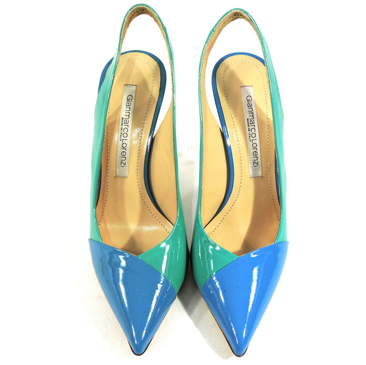 GIANMARCO LORENZI 🇮🇹 WOMEN'S BLUE & GREEN PATENT LEATHER FASHION SANDALS