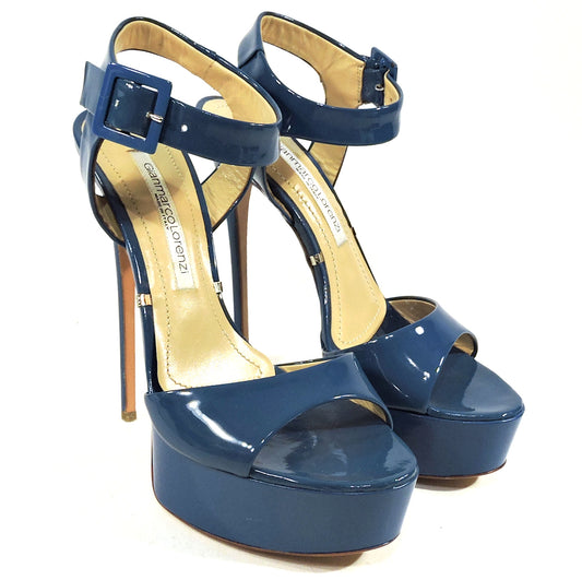 GIANMARCO LORENZI 🇮🇹 WOMEN'S BLUE PATENT LEATHER FASHION SANDALS