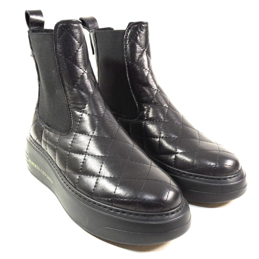 ALBERTO CICCIOLI 🇮🇹 WOMEN'S BLACK SOFT LEATHER FLAT ANKLE BOOTIES 37 EU