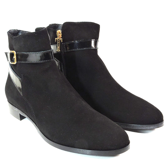 LUIGI TRAINI 🇮🇹 WOMEN'S SOFT BLACK SUEDE COMFORT WINTER FLAT BOOTIE