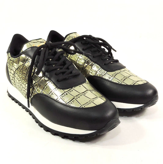 GIUSEPPE ZANOTTI 🇮🇹 WOMEN'S PLATINO & BLACK SOFT LEATHER COMFORT SNEAKERS
