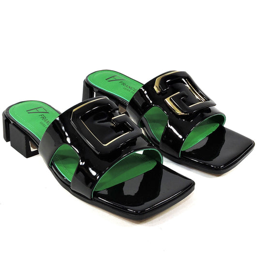 FRANCESCO V. 🇮🇹 WOMEN'S BLACK PATENT LEATHER FASHION MULES