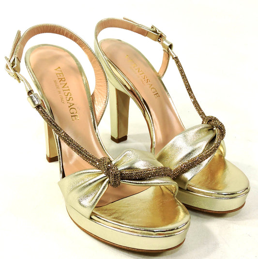 VERNISSAGE 🇮🇹 WOMEN'S GOLD LEATHER FASHION HEELED SANDALS