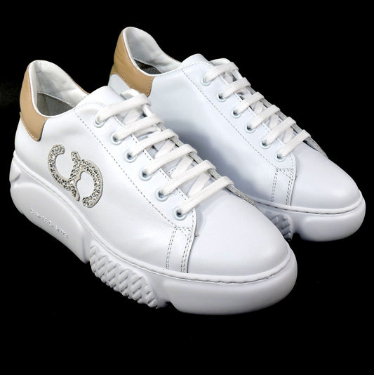 CASADEI 🇮🇹 WOMEN'S WHITE SOFT LEATHER COMFORT FASHION SNEAKERS