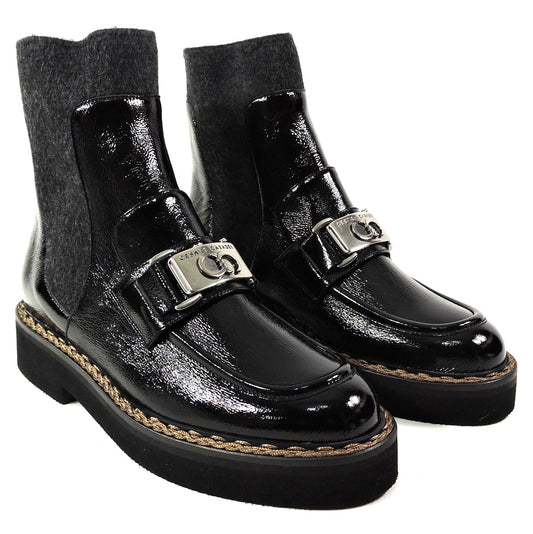 CASADEI 🇮🇹 WOMEN'S BLACK PATENT LEATHER WINTER FASHION BOOTIE