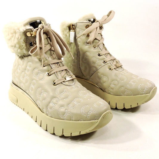 CASADEI 🇮🇹 WOMEN'S BEIGE SOFT LEATHER MERINO FUR INSIDE WINTER BOOTIE