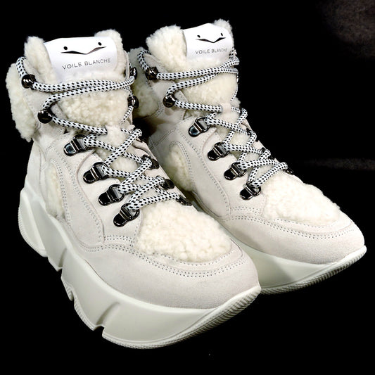 VOILE BLANCHE 🇮🇹 WOMEN'S WHITE SUEDE WINTER ANKLE SNEAKERS