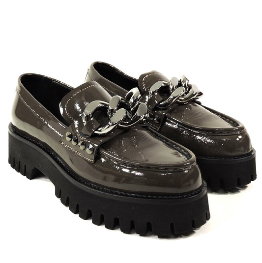 CASADEI 🇮🇹 WOMEN'S BROWN PATENT LEATHER COMFORT FASHION LOAFERS