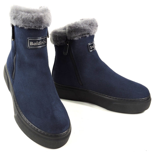 BALDININI 🇮🇹 WOMEN'S BLUE SUEDE WINTER BOOTS WITH REAL FUR INSIDE