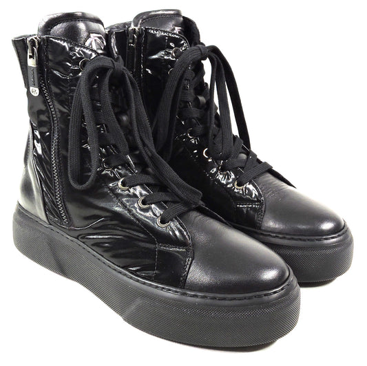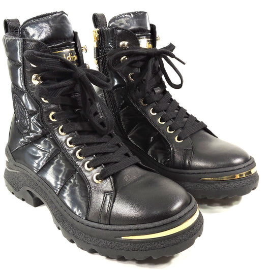 BALDININI 🇮🇹 WOMEN'S BLACK LEATHER & FABRIC WINTER FASHION BOOTIE
