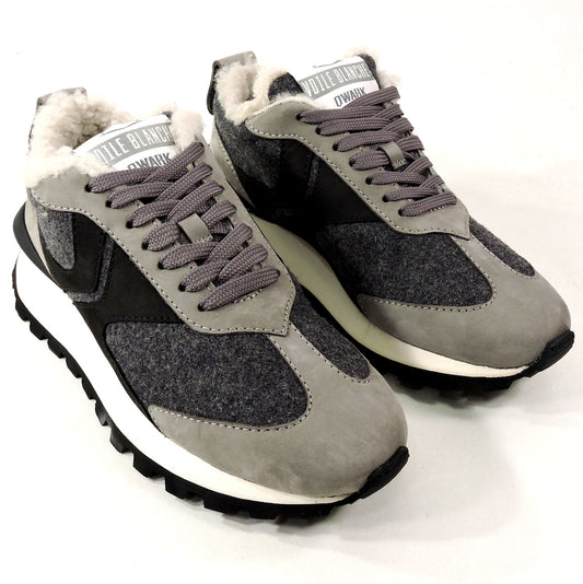 VOILE BLANCHE 🇮🇹 WOMEN'S GREY LEATHER & WOOL COMFORT WINTER SNEAKERS