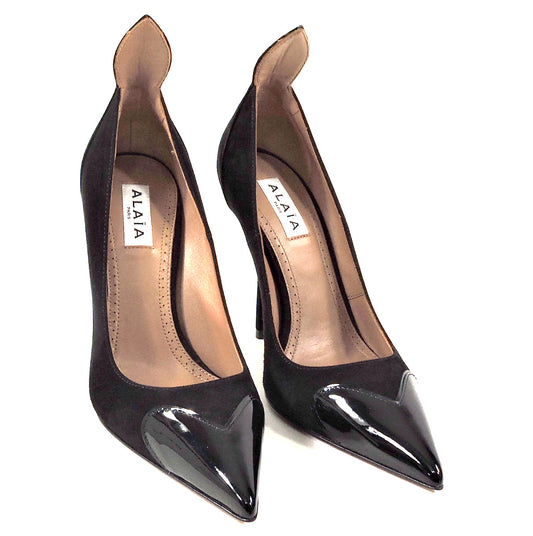 ALAIA 🇮🇹 WOMEN'S BLACK SUEDE & LEATHER FASHION PUMP