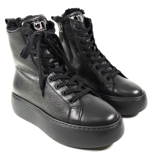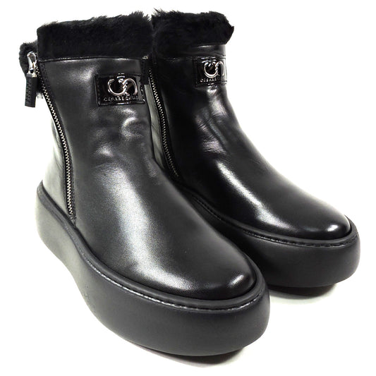 CASADEI 🇮🇹 WOMEN'S BLACK SOFT LEATHER MONTONE FUR WINTER BOOTIE