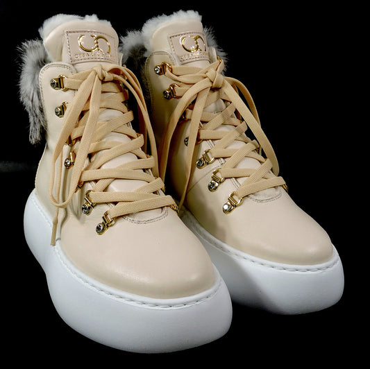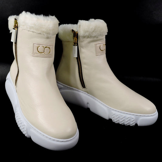 CASADEI 🇮🇹 WOMEN'S CREAM SOFT LEATHER WINTER MONTONE FUR COMFORT BOOTIE