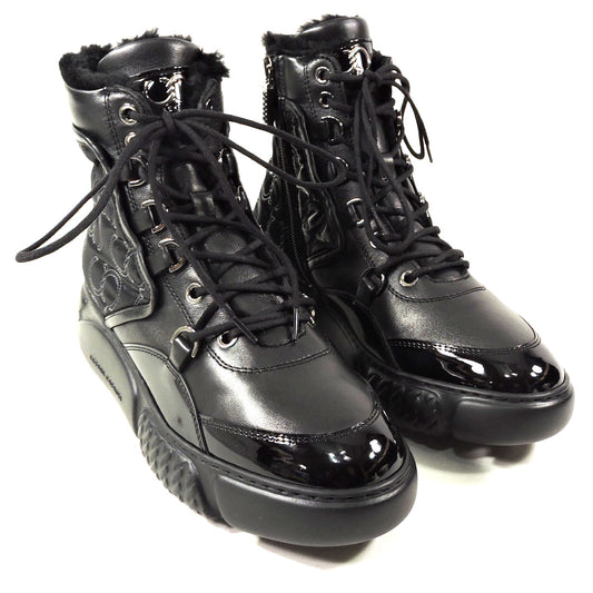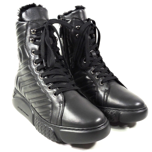 CASADEI 🇮🇹 WOMEN'S BLACK LEATHER & FABRIC WINTER SPORT BOOTIE