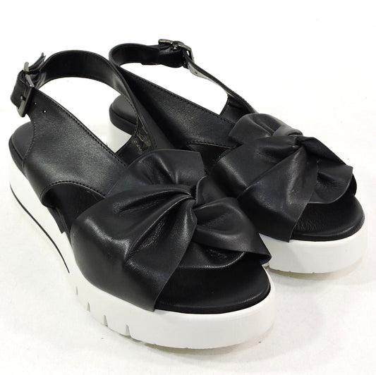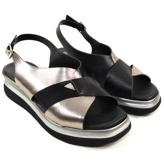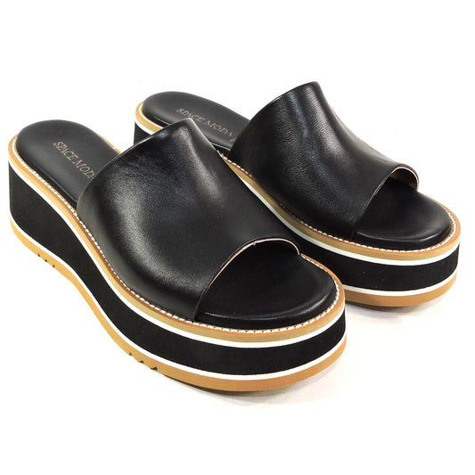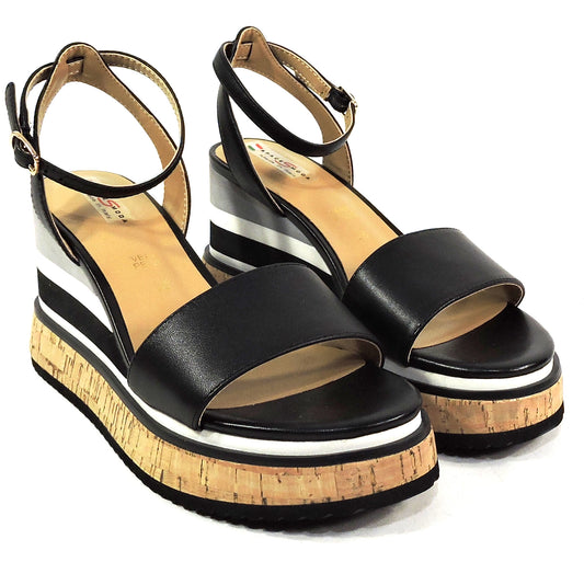 SPACE MODA BY REPO 🇮🇹 WOMEN'S BLACK SOFT LEATHER COMFORT SUMMER WEDGE SANDALS