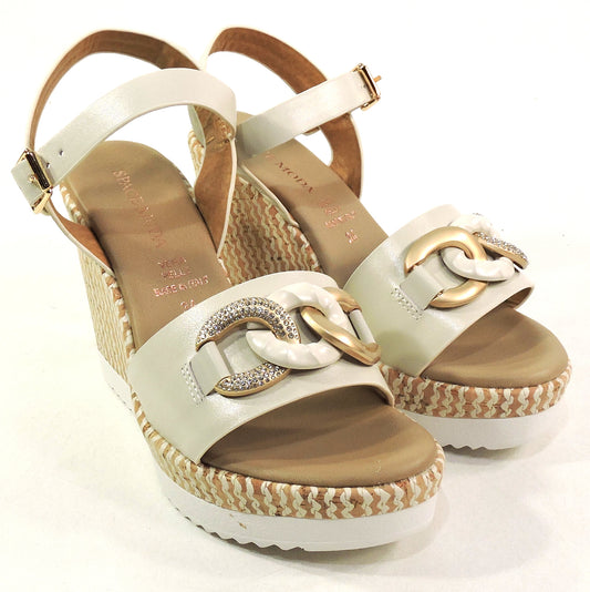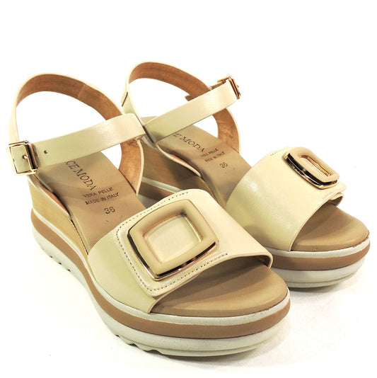 SPACE MODA BY REPO 🇮🇹 WOMENS IVORY COMFORT LEATHER WEDGE SUMMER SANDALS