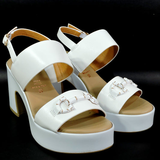 SPACE MODA BY REPO 🇮🇹 WOMEN'S WHITE SOFT LEATHER COMFORT SUMMER HEEL SANDALS