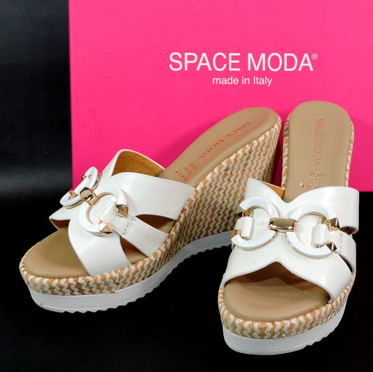 SPACE MODA BY REPO 🇮🇹 WOMEN'S WHITE SOFT LEATHER COMFORT SUMMER WEDGE SANDALS