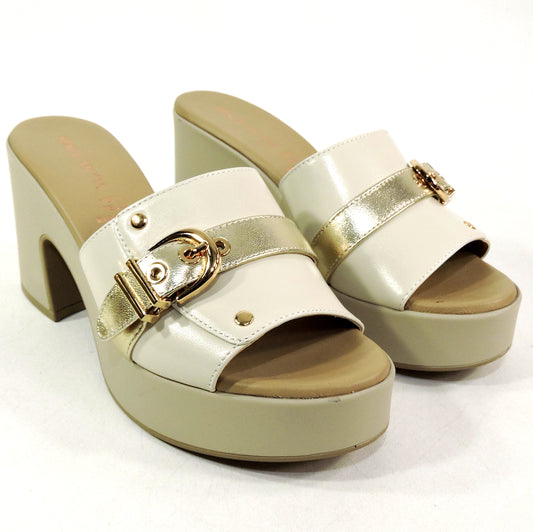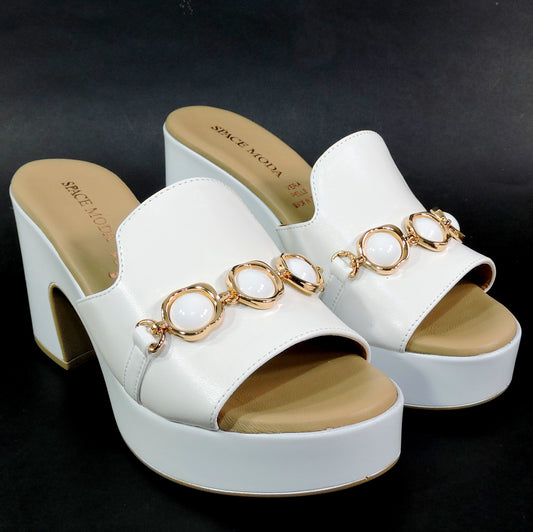 SPACE MODA BY REPO 🇮🇹 WOMEN'S WHITE SOFT LEATHER COMFORT SUMMER HEELED MULES
