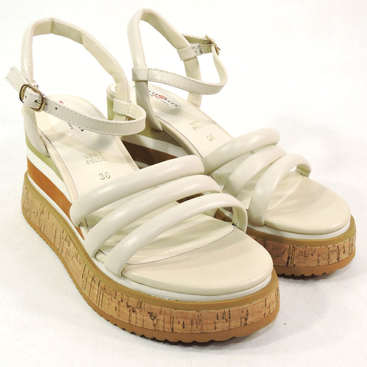 SPACE MODA BY REPO 🇮🇹 WOMEN'S IVORY SOFT LEATHER COMFORT SUMMER WEDGE SANDALS