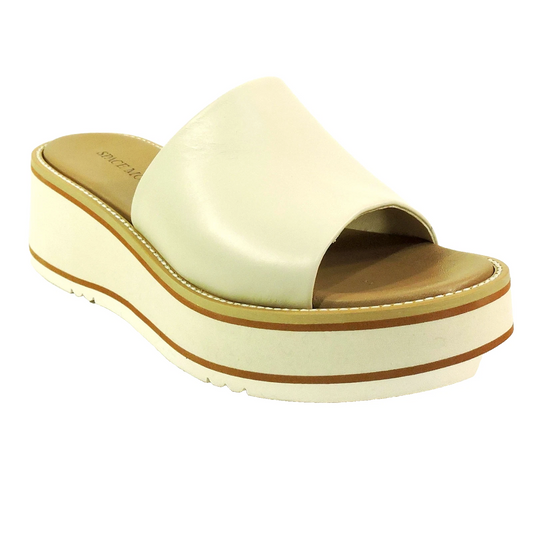 SPACE MODA BY REPO 🇮🇹 WOMEN'S IVORY SOFT LEATHER COMFORT SUMMER WEDGE MULES